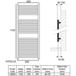Duchy Straight Heated Towel Rail 1110mm H X 500mm W – Matt Black