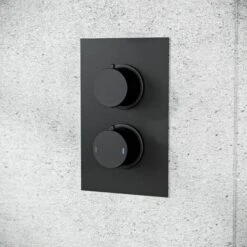 Voilet 2 Dial 2 Way Round Concealed Thermostatic Mixer Valve, Shower Head & Handset Matte Black