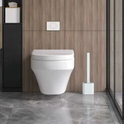 Nexus Freestanding Toilet Brush Holder With Curved Brush, White Finish