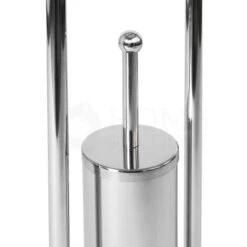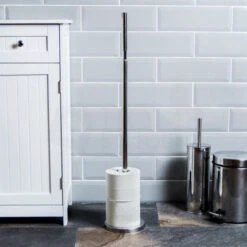 Toilet Brush & Paper Holder With Round Base Tissue Roll Storage, Silver