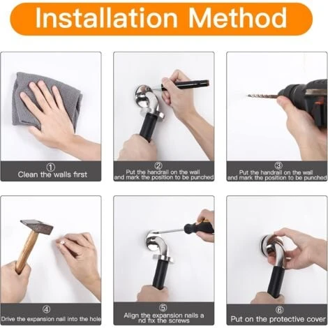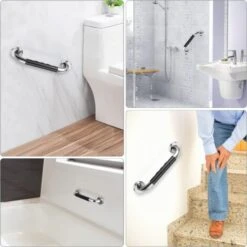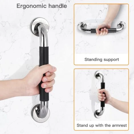 【High Quality Stainless Steel Material】This elderly grab handle grab handle is made of 304 stainless steel, rustproof, anticorrosion and durable. The total length of the bathtub handle is 13 inches, the length of the rubber grip is 6.5 inches, suitable for all types of hands. Our set includes 2 shower handles and comes with 12 screws for more secure installation.