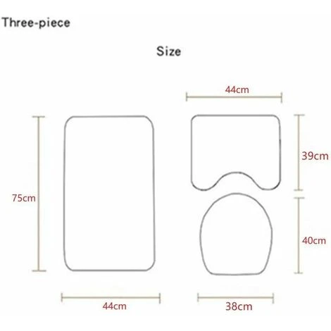 Set includes: 1 mat (44cm 75cm) + 1 U-shaped blanket (39cm 44cm) + 1 toilet seat cushion (38cm 40cm).