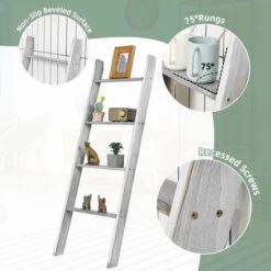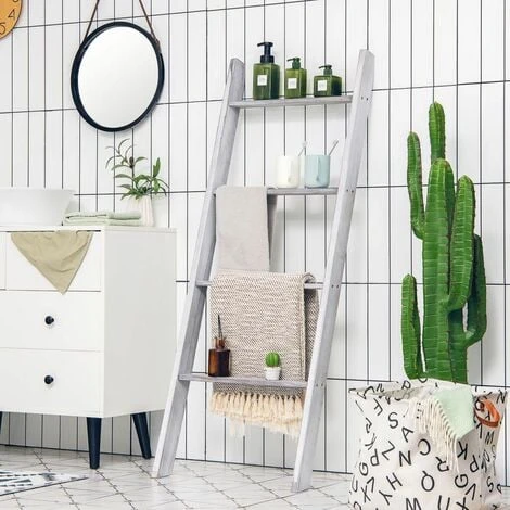 Pine wood structure guarantees great sturdiness and overall weight capacity is improved up to 80 kg. Plus, as it is carefully painted, the shelf features a longer service life. As for the stability, it is equipped with non-slip beveled surfaces, so the blanket ladder can be held well in place. What’s more, the shelf plays different roles in different places. You can place it in living room to store beautiful decorations, in bathroom for toiletries, in bedroom for blankets.