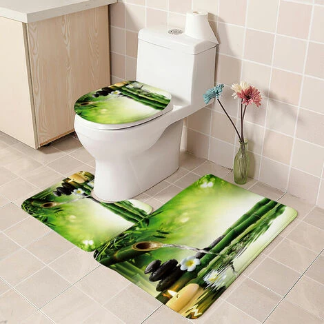 Three-piece bath mat. Includes bathroom rug, toilet seat cushion rug This bathroom set size fits most bathroomsHigh definition graphic design printed with advanced anti-fade technology. 3D printing pattern adds life to your bathroom, makes your bathroom fresher and has a new look. Give your room a new lookMade of high quality polyester fiber and soft flannel, it is waterproof, non-slip, durable, hygienic, safe and skin-friendly. This bath mat set has no chemical smell. Will not cause any harm to you and your family Custom 3D printed toilet mats can be used in bathrooms, front doors, floors, kitchens, balconies, office bathrooms, bedrooms, living rooms, etc. This is a Machine washable gift. Machine wash with cold detergent in cold water. Do not use chlorine or bleach. Tumble dry low or air dry. Worry-free home care