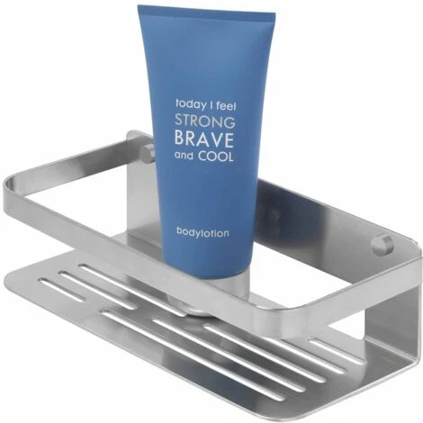 The basket is made of high-quality materials and suitable for use in damp areas. The flat shelf and high rim of the basket make sure that the care products kept in place. It is easy to attach and clean.