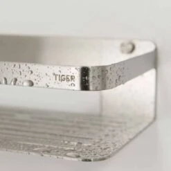 The Tiger bathroom basket Caddy is made of stylish brushed stainless steel and presents an ideal storage solution for shampoo or shower gel bottles in the shower or bathroom.