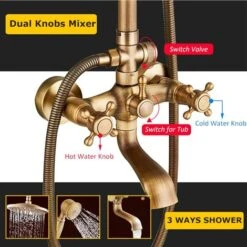 Bathroom wall mounted shower tap system,antique brass finish,classical style and looking,for bathroom daily bathing using