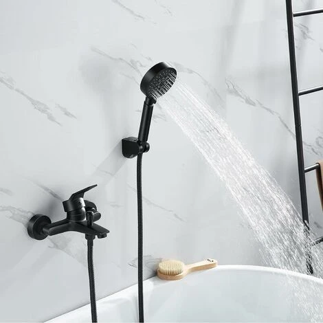 Black Bathtub Shower Mixer Tap with Hand Shower, Wall Mounted, Easy to Use, Does Not Plug plenty of room.