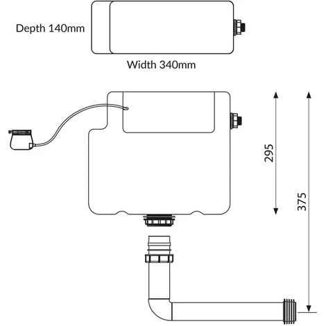 - Dimensions: (H) 375mm x (W) 340mm x (D) 140mm // without pipe (H) 295mm