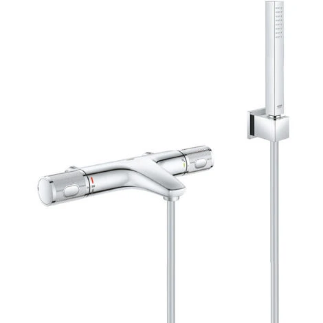 Enjoy all the innovative technologies of Grohe on Grohtherm thermostatic mixer bath/shower set + Stick 1 jet hand shower, wall holder, flexible hose, Chrome (34780000-CUBESTICK).