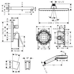Features of the Vernis Shape All-in-one shower set with 230° head shower + 2 jet hand shower, black matt :