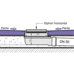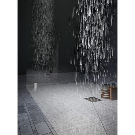 - Ultra-flat horizontal drain with a minimum thickness of 97 mm, including the shower tray