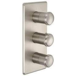 – Triple shower valve incorporates ceramic disc technology to prevent leaks and drips