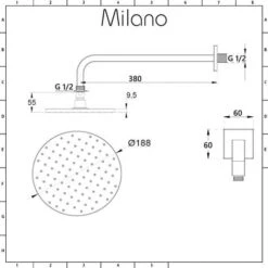– Features a 188mm round shower head with wall-mounting arm