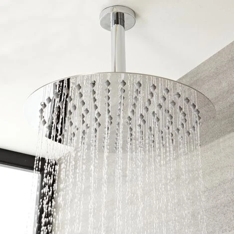 – Anti-corrosive stainless steel 300mm round shower head and brass ceiling arm