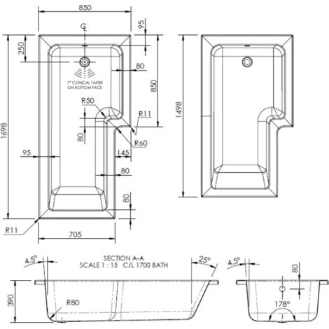 •  Bath conforms to BS EN 14516:2006 + A1:2010.
