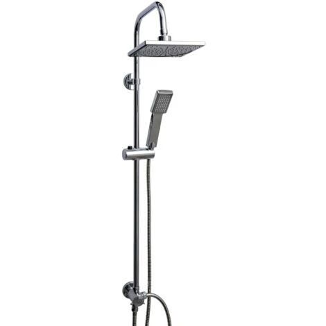 - Shower head, shower hose (1.5 m length), rain shower head, shower rail, rubber seals and mounting hardware