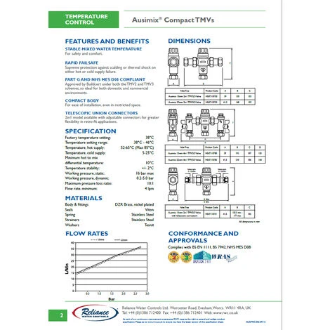 Full technical specifications in PDF format for the Reliance Ausimix Compact Thermostatic Mixing Valves are available here.