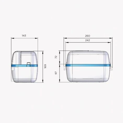 Pumps up to 4.5m vertically or 50m horizontally It has two inlets and a 2 litre tank. It discharges through 8 or 11 mm pipework and has a working temperature of 35ºC, however it will handle temperatures up to 80ºC for short periods and a minimum pH of 2.5.  The Sanicondens Pro is for use where a pH neutralising tray is not required.  Accessories supplied with the product are 2 metres of electric cable and 6 metres of drainage pipe.