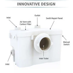 The versatile pump has three inlets, one main inlet for the toilet and one additional inlet that allow the user to connect to washbasins, sinks, bathtubs or washing machines.