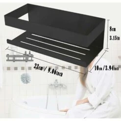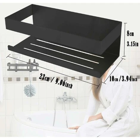 Large Capacity This shower shelf has enough capacity to store your shower gel, shampoo, bottles of perfume, towels and other items and efficiently organize your bathroom. Dimensions (L x W x H): 23 x 10 x 8 cm