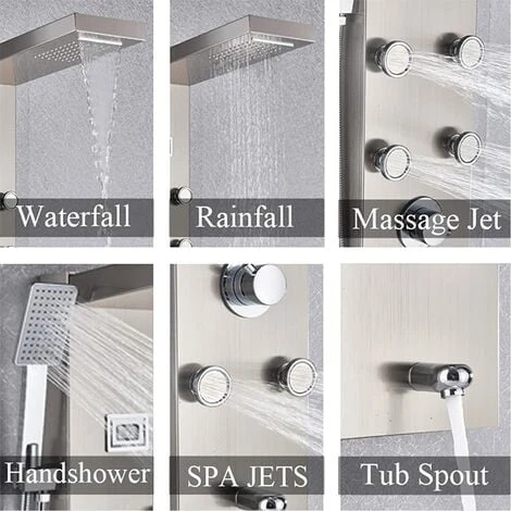 ❤5 Functions:(Rainfall Shower Head, Waterfall Shower Head,Massage Sprayer,Hand Shower,Low Tub Spout).Each function work separately,ensure enough water pressure.Diverter knob for diverter each function.