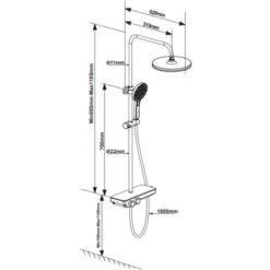- Thermostatic mixing valve with childproof lock at 38°C to prevent scalding. The thermostat allows you to easily set the temperature and maintain it during the shower.