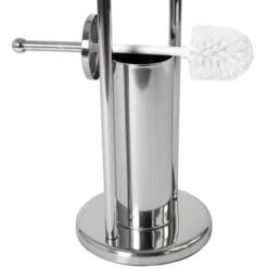Home Discount offers this stunning and handy bathroom gem, the Toilet Brush and Paper Holder with Round Base. Don`t rush to damage your walls with not-so-good-looking wall-mounting toilet paper holder and meet this gorgeous free-standing holder. No more drilling, no glue, no mess, only style, elegance, and unbelievably easy installation! This superb steel toilet paper holder is a good match to any bathroom thanks to its tall and minimal design, and what is more important is that toilet paper can now be placed where it suits you and not where the walls allow. Moreover, this stand will save a space in your toilet as it accommodates a toilet brush and brush holder as well.