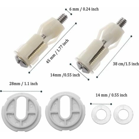 Application: Toilet seat screws suitable for 14-16mm openings. Fits most standard toilet seats with a top mounting hinge.