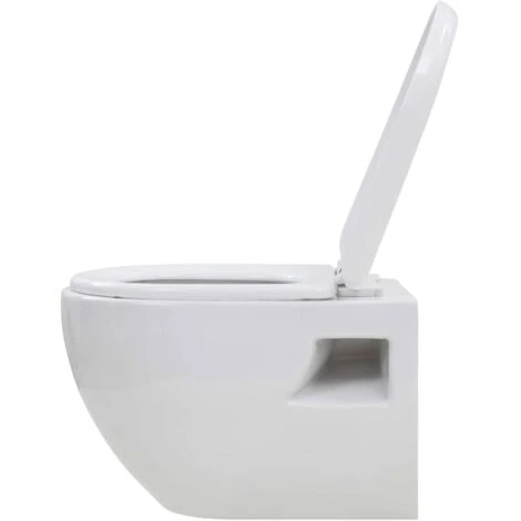 This toilet features a soft-close system that enables the lid to close automatically and softly with simply a touch of your fingertip. Consisting of a ceramic toilet bowl and a low-maintenance lid, the wall-hung toilet is easy to clean. This sleek toilet has a curved front and a comfortable seat. It is easy to install the toilet.
