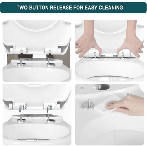 - Quick Release Toilet Seat: Lift up the toilet seat and push two buttons to remove for easy cleaning